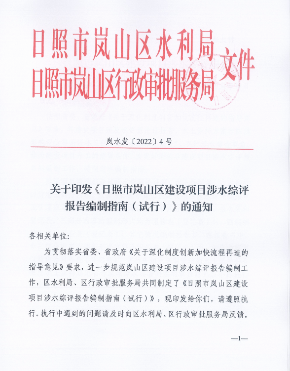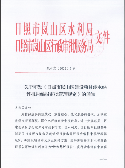 新政策!日照市嵐山區(qū)推行“三合一”涉水綜評報告!為企業(yè)帶來切實優(yōu)惠!